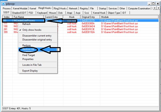 2)Запустить саму программу, найти красный процесс pointblank.exe.exe и нажать кнопку Ring0 Hooks
